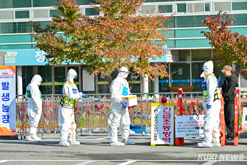 훈련 참여 기관은 초동대응부터 방역대 설정, 살처분·오염물 처리, 이동중지 명령, 청소와 소독 등 모든 절차를 실제 상황처럼 시연했다.